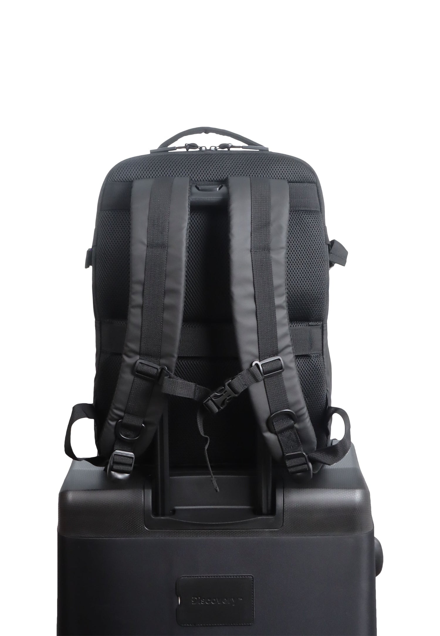Correas de hombro acolchadas, distribuyen el peso de manera uniforme para evitar molestias. Correas con enganches a la altura del pecho para mejorar la sujeción durante su uso. Panel trasero transpirable, mantiene la espalda fresca y cómoda durante todo el día. Asa de transporte superior, asa reforzada para llevar la mochila fácilmente en la mano. Cinta trasera para ajustar a maleta-trolley.